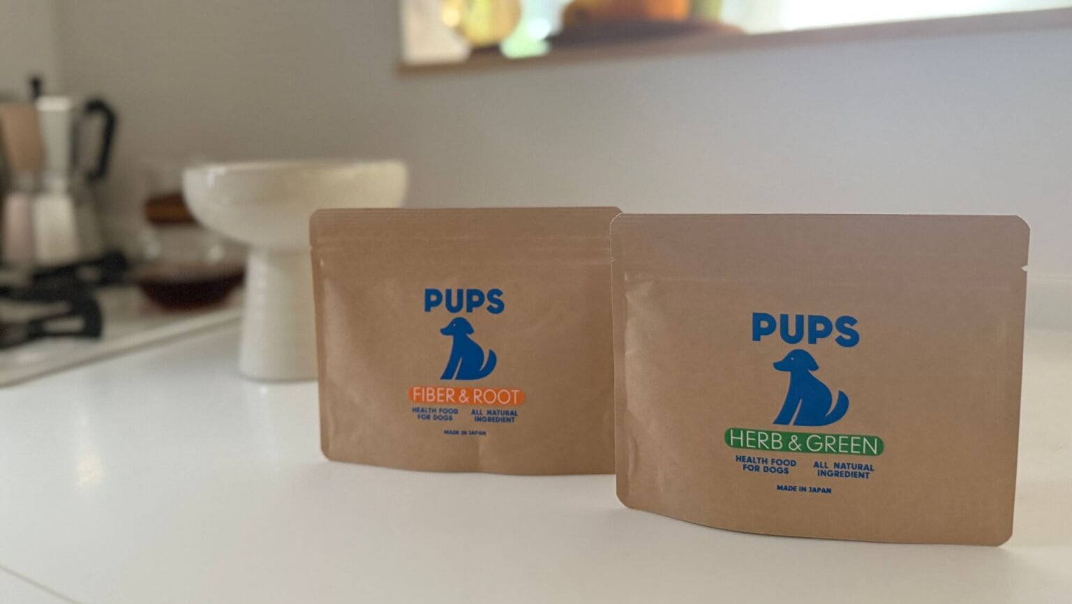 PUPS(パプス)の由来、Pupsは本来「子犬」の意味ですが、いくつになっても可愛らしいという意味合いで使う呼び方である事と、「パプス」という音の響きが元気でいつもハッピーな犬らしさを感じられるポップな雰囲気と思い名付けました。子犬用ではなく全年齢の犬の為のブランドです。